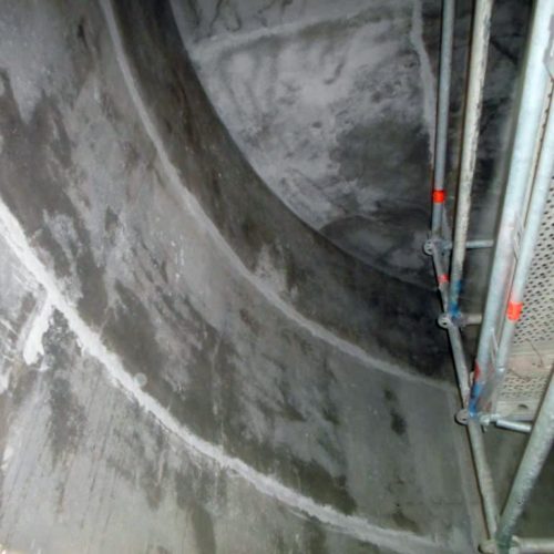 Instalación de material anti abrasivo Densit Wearflex (96 Toneladas) incluida la instalación de la malla de anclajes para los distintos espesores, material instalado en los ciclones de los molinos y ciclones sobre el enfriador.